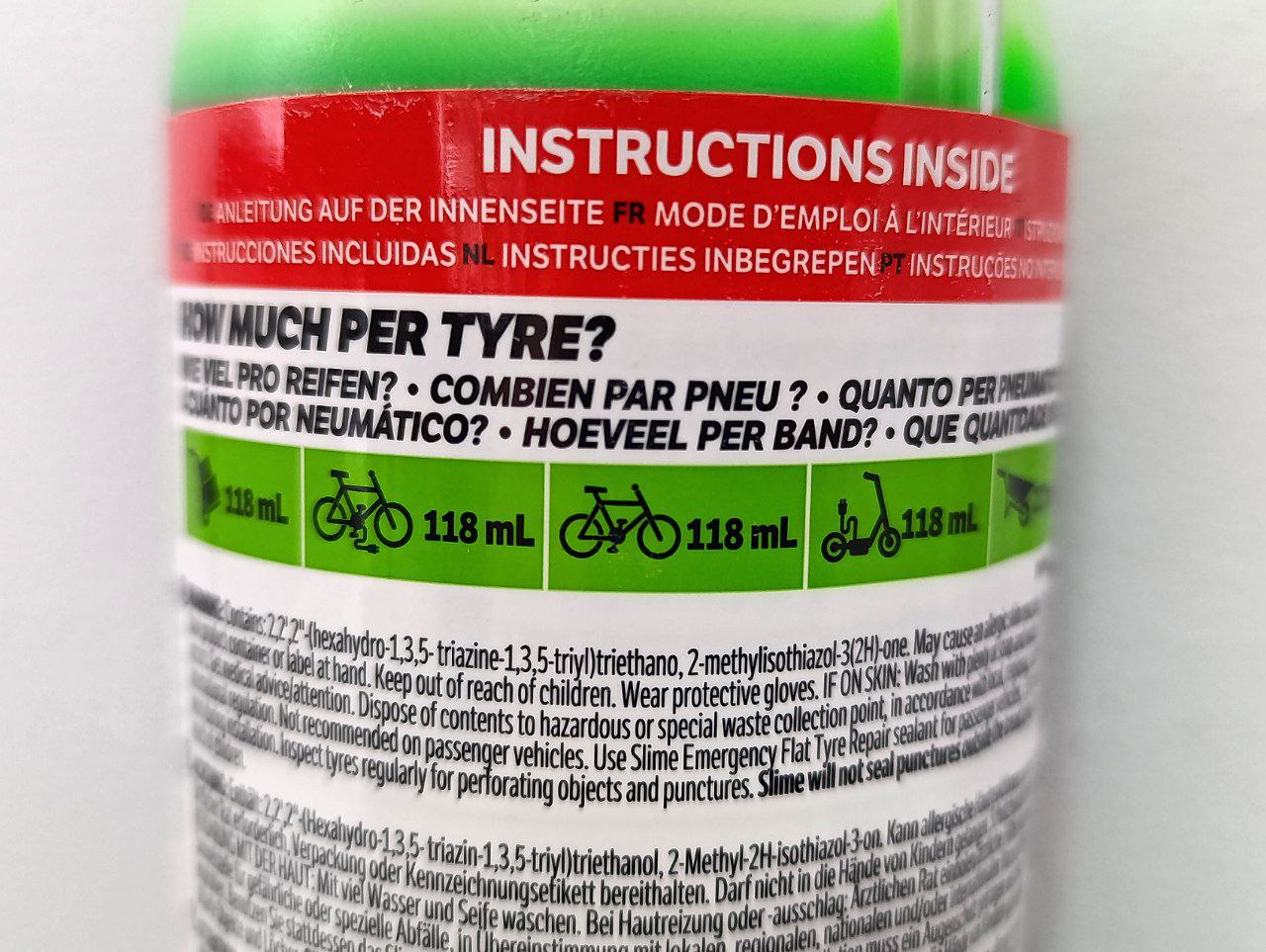 Обратите внимание: Slime tube нельзя использовать в бескамерных колесах или в колесах, движущихся по шоссе со скоростью более 72 километров в час.