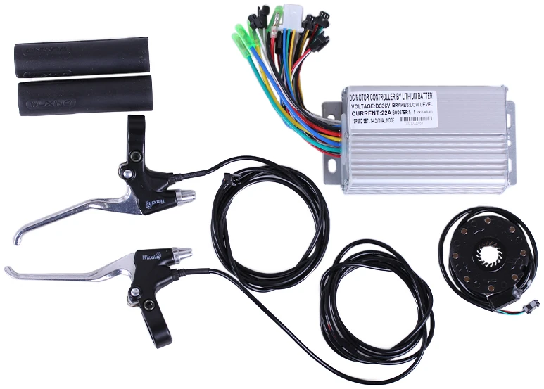 Также набор оснащен ручками газа/тормоза, которые управляют функцией приведения в движение или тормоза мотора колеса, показывает индикацию емкости аккумулятора. Компактное зарядное устройство для быстрого и безопасного заряда, сохраняющего срок службы аккумуляторов. А грипсы, в свою очередь, обеспечат надежный захвата руля, смягчения вибрации, уменьшение нагрузки на суставы.