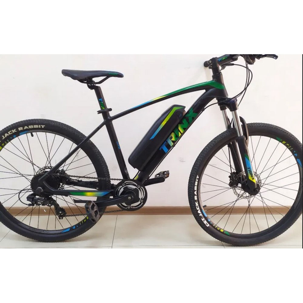 Стильный электровелосипед Trinx Х1Е, идеально подходит для поездок по городу. Оцените преимущество велосипеда по дороге на работу или на прогулке. Двигатель велосипеда питается от литий-ионного аккумулятора Panasonic 5,2 Ач. На одном заряде велосипед способен проехать 40-50 км, в зависимости от нагрузки на велосипед. В комплекте с велосипедом компактное зарядное устройство, время необходимое для полного заряда аккумулятора 5 часов. Мощность двигателя 36 Вт или 250 ВА. Если у вас в дороге разрядилась батарея, вы с легкостью доедете до места назначения классическим способом крутя педали, благодаря алюминиевой раме велосипед имеет не большой вес, всего 18 кг., при максимально разрешенном весе 120 кг. Конструкция рамы гармонично спроектирована и сбалансирована, с учетом электродвигателя, что бы вам было удобно ехать и не цеплять силовую установку. Для проезда по бездорожью на модели установлена гидравлическая амортизационная вилка, с ходом 100 мм. Использовано надежное навесное оборудование Shimano Altus, на 9 скоростей, благодаря чему для вас не станет преградой проезд по суровому бездорожью. Что бы остановить велосипед на модели установлены усиленные гидравлические тормоза Shimano M315.