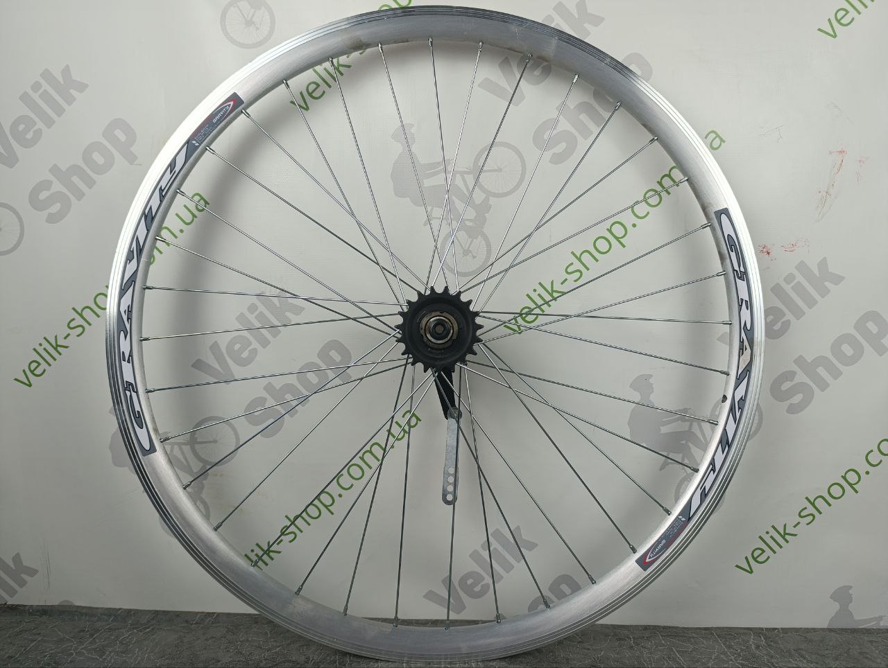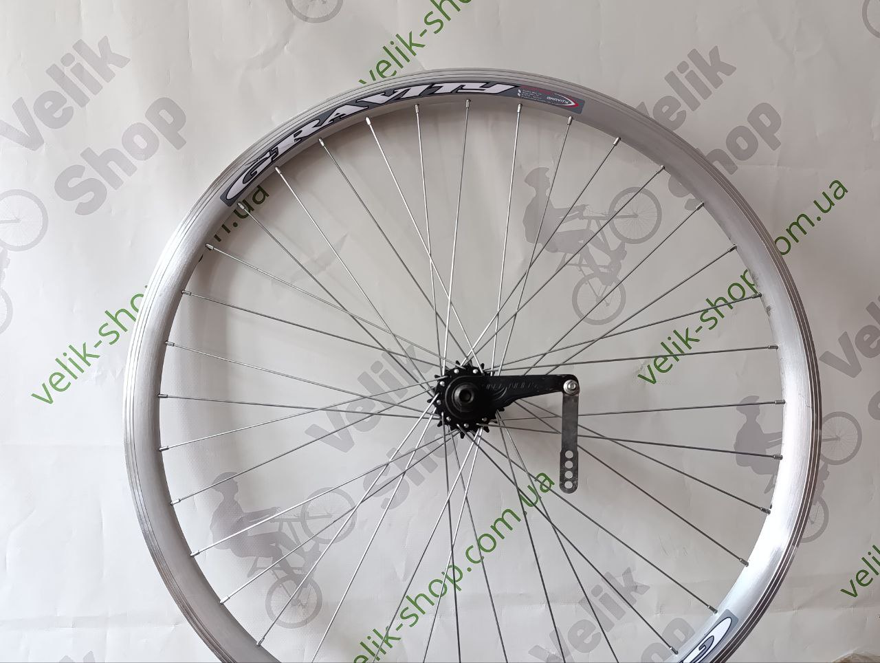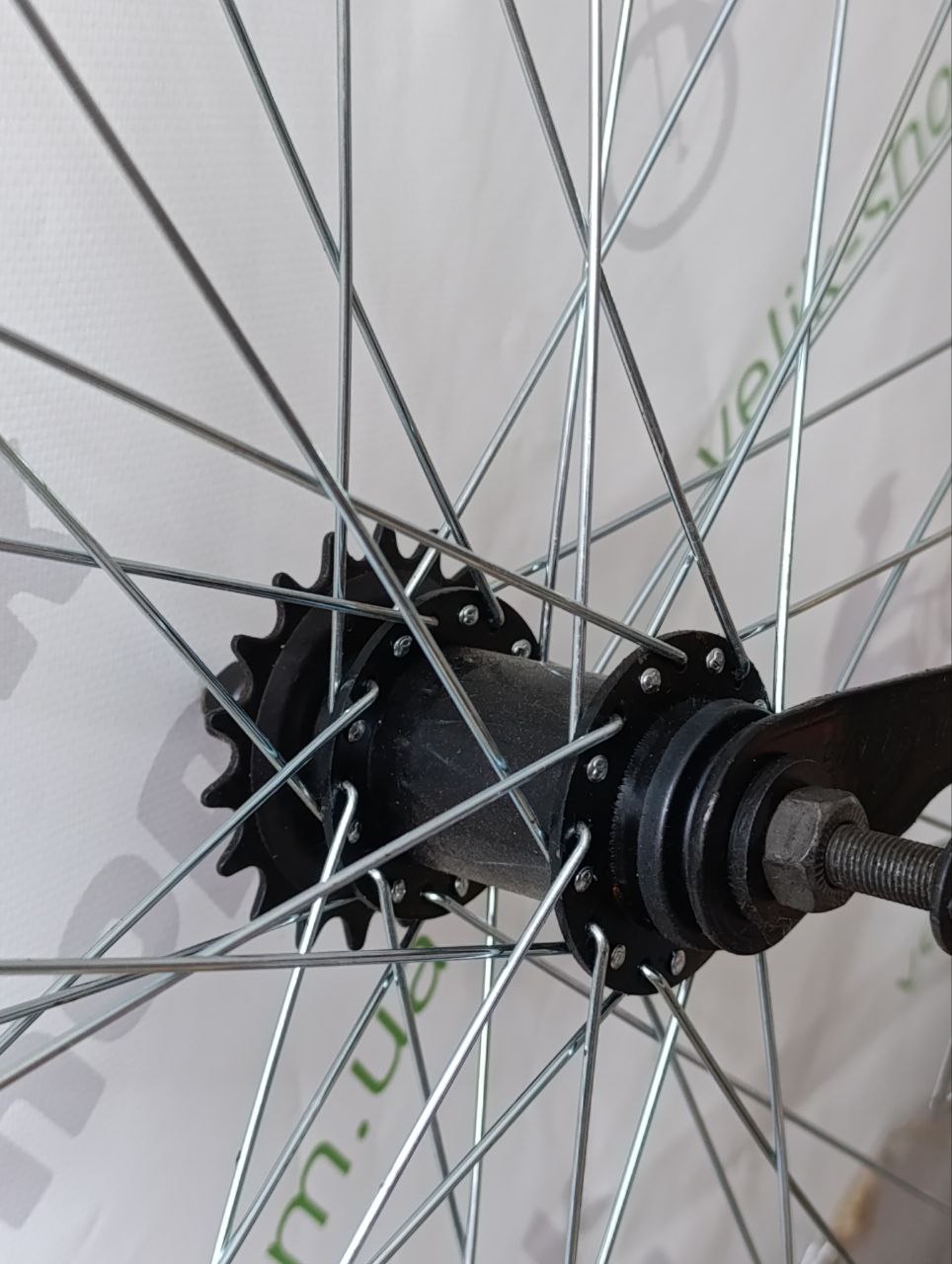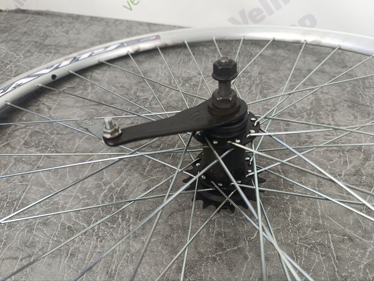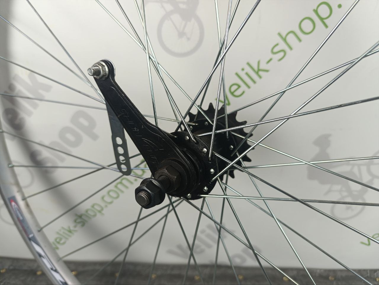 Колесо в сборе заднее с ножным тормозом, диаметр 28″ подойдет для самых простых дорожных велосипедов “Украина”, “Славутич”, “Лыбидь”, “Минск” и других можедей ХВЗ, ММВЗ.