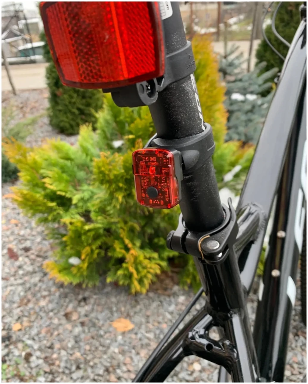-легкая и быстрая установка с помощью резинового зажима, который подходит для любой толщины руля и подседельного штыря.