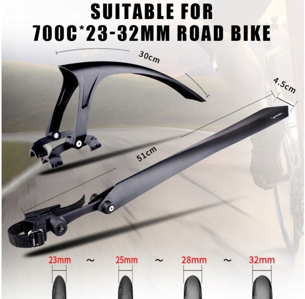Цвет: Черный Длина: 305 мм(переднее), 520 мм(заднее) Ширина: 25-45 мм Вес: 145 г Размер колес: 700с Ширина покрышек: 23-35мм Подходит для шоссейных, туринговых и фикс велосипедов. Удобная система быстрого снятия и установки. Расширенная форма обеспечивает лучшую защиту от грязи и брызг. Аэродинамический дизайн и минимизирует сопротивление воздуха.