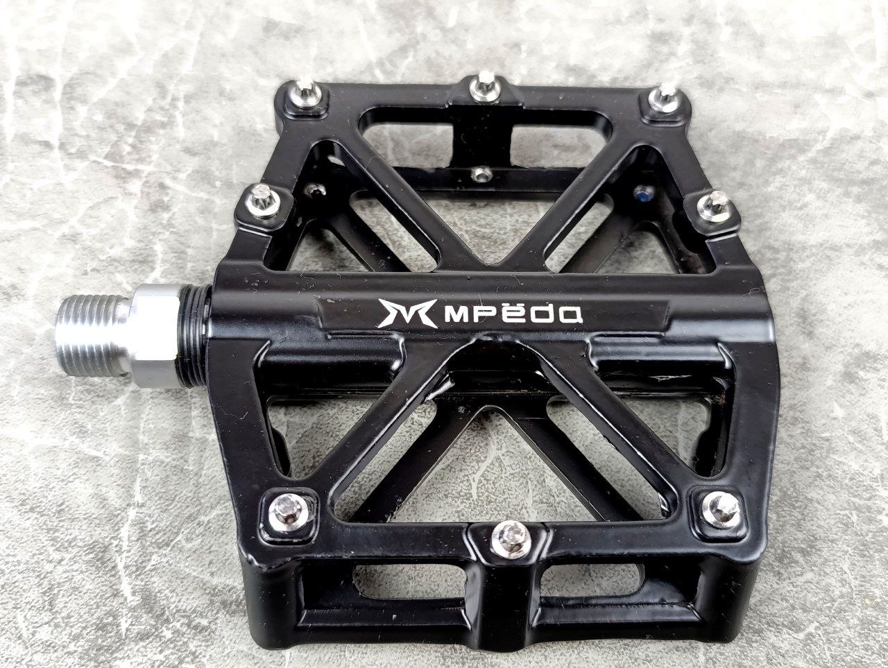 Педали Mpeda AL-10 предназначены для использования на горных и городских велосипедах, а так-же могут устанавливаться на BMX. Имеют литой цельно-алюминиевый корпус, что обеспечивает максимальную прочность при относительно небольшом весе Подшипник: пром. подшипник Материал корпуса: Алюминий c анодированным покрытием Ось: Cr-mo, хромомолибденовая сталь Цвет: красный, зеленый, синий Особенности: съемные металлические шипы, для улучшения сцепления подошвы с поверхностью педали, предотвращают соскальзывание
