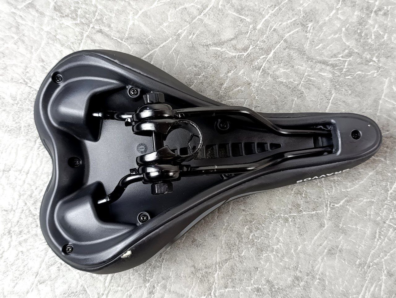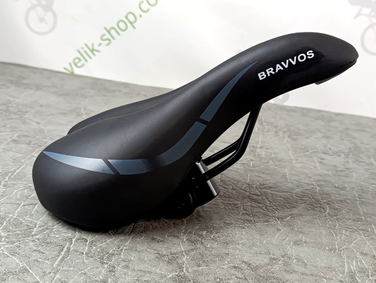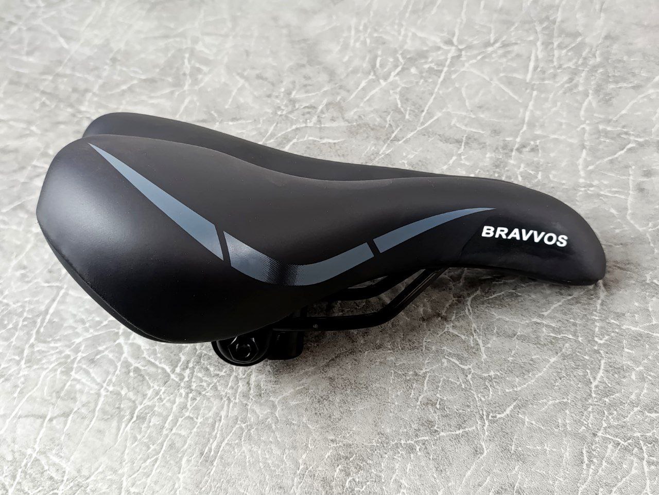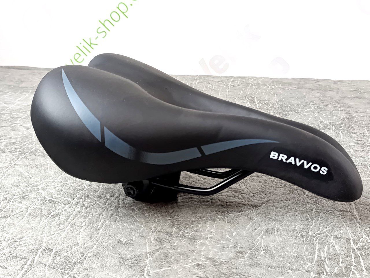 Седло умеренно широкое и с мягким паралоновым наполнителем. Такое седло будет удобным для поездок средней продолжительности. Так же седло имеет небольшой анатомический вырез в центральной части для уменьшения давдения на паховую область велосипедиста.