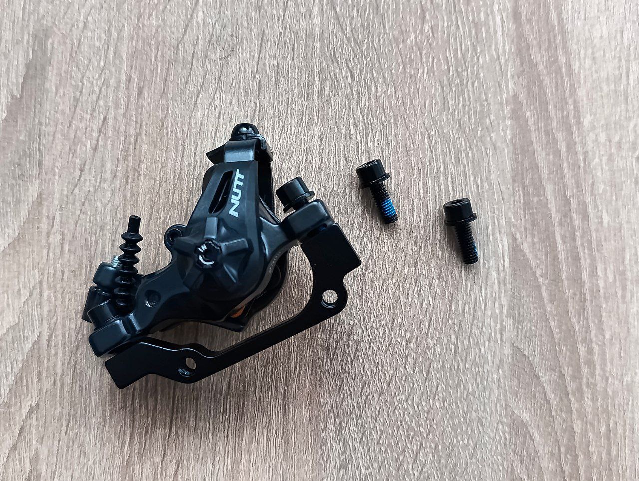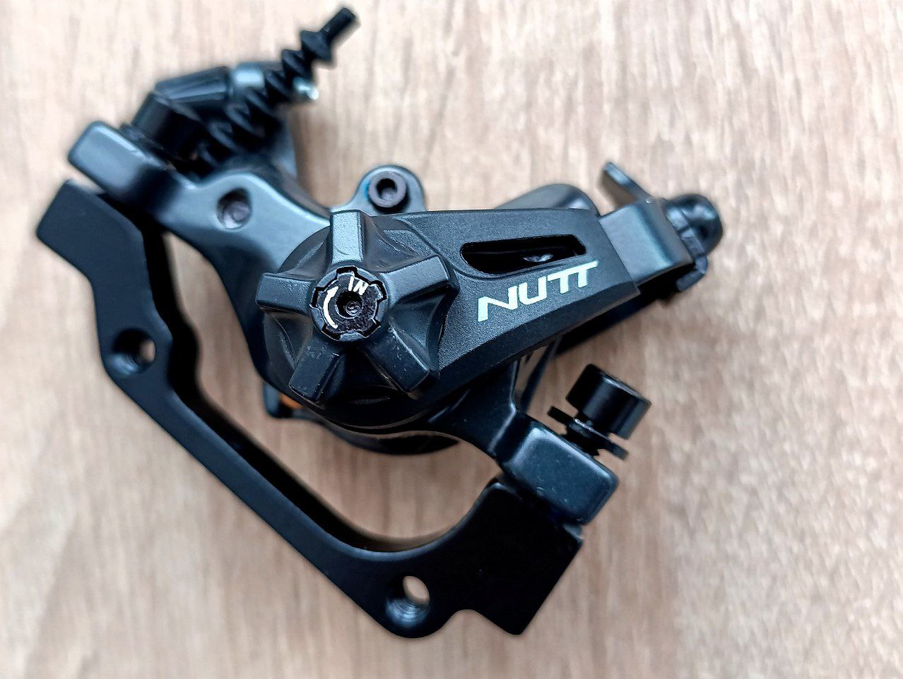 Тормоз дисковый механический NUTT модель S-5. Отличительная особенность калипера является двусторонний подвод колодок к ротору во время торможения, что обеспечивает лучшую модуляцию и тормозную мощность по сравнению с большинством классических, механических дисковых тормозов. Так же эта конструкция обеспечивает равномерный износ колодок.