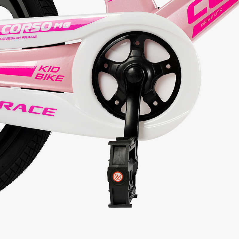 Модель Corso Magnesium 20″ за счет магниевой рамы, магниевых дисков, магниевой вилки имеет очень легкий вес, по сравнению с велосипедами на стальной раме, разница примерно составляет от 3 до 4 килограмма в зависимости от модели велосипеда.