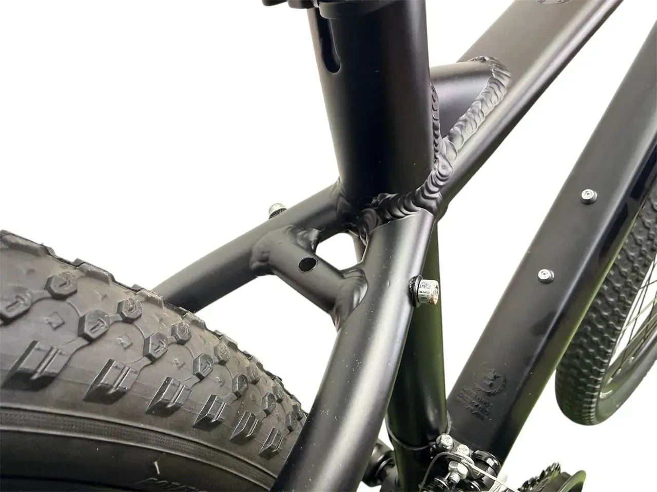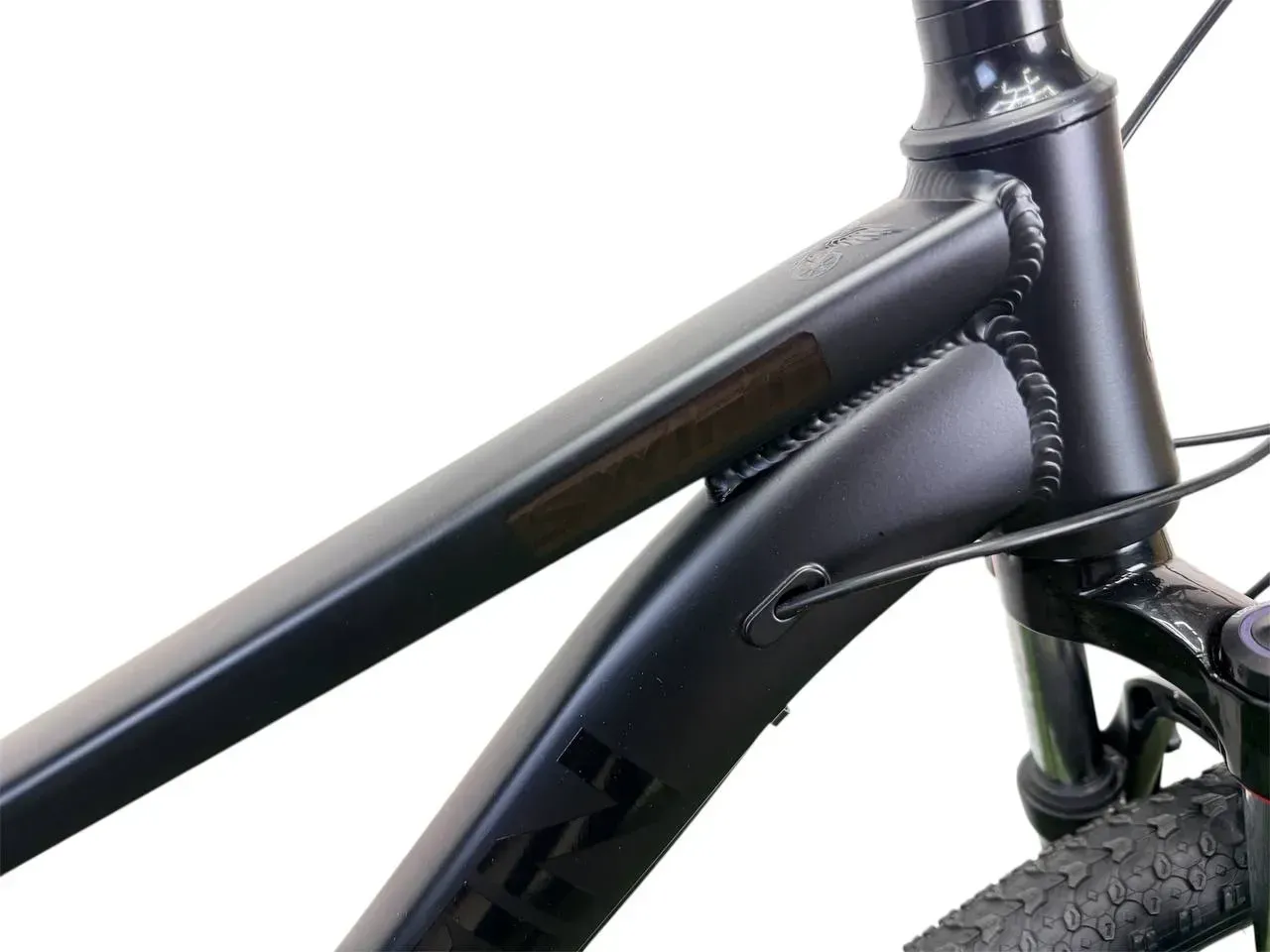 Алюминий 6061, гидроформированные трубы, рулевая 1.1/8″, внутрення прокладка всех тросов, крепление под крылья и флягодержатель