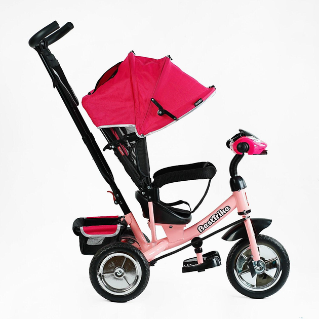 Съёмная родительская ручка позволит ребёнку управлять велосипедом самостоятельно. На ручке расположена удобная сумка-рюкзак.