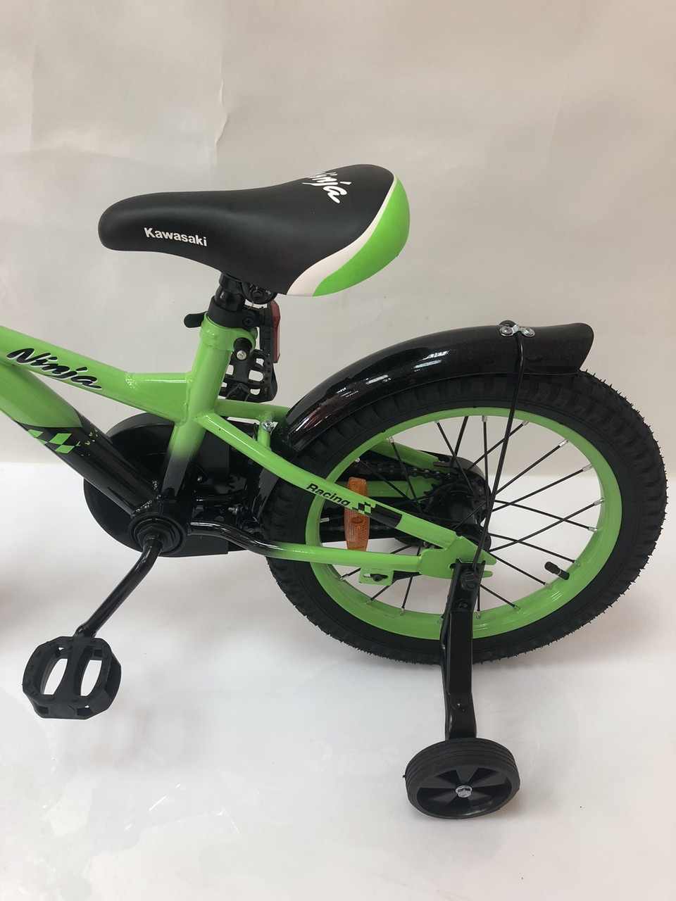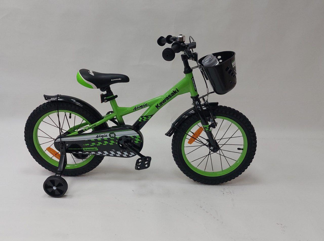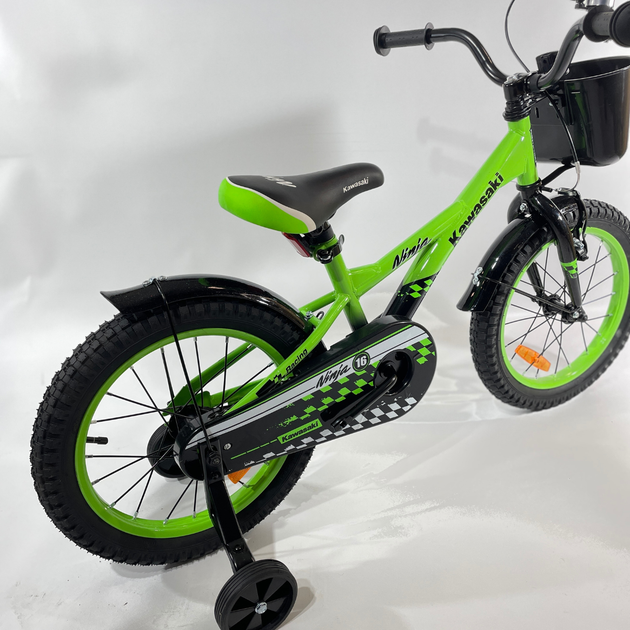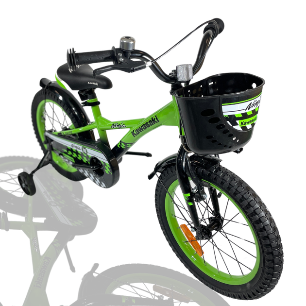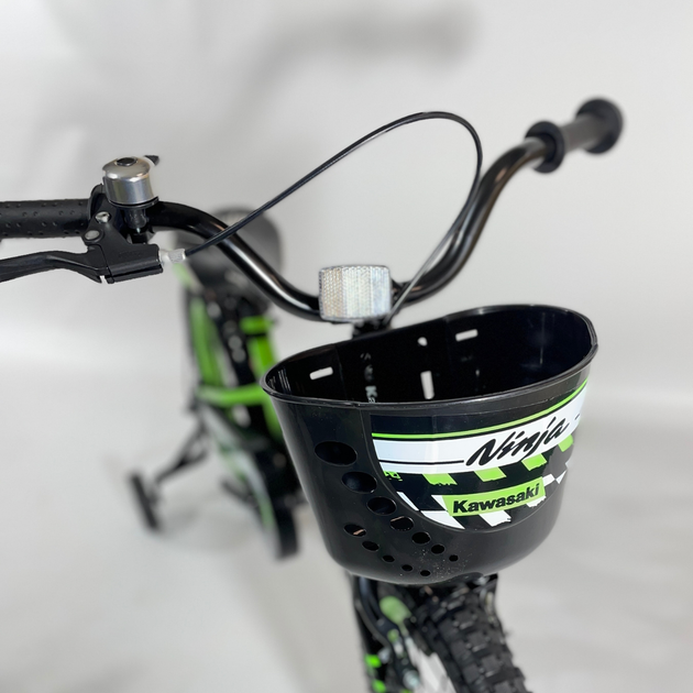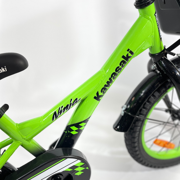 Детский велосипед Kawasaki-Ninja K1620 20″ – это стильный и практичный подарок для вашего ребенка. Детский велосипед декорирован в стиле гонки с колесами 20 дюймов, бутылочкой для воды и корзинкой. Он подходит гонщикам в возрасте от 5 лет Основа конструкции стальная рама. Она обеспечивает основные особенности велосипеда – прочность, долговечность, стойкость к повреждениям. Благодаря небольшому весу рамы гарантирована хорошая маневровость транспортного средства. Снизить скорость райдера помогут передний и задний тормоз. Чтобы научить ребенка кататься на велосипеде, можно прикрепить боковые страховочные колеса. Когда малыш освоит самостоятельное катание, колеса можно убрать. Гонщик порадует звонок на руле. Передние и задние крылья велосипеда оградят ребенка от брызг воды и грязи. Перед рулем размещена вместительная корзина для игрушек и детских вещей, а позади специальный крепеж для бутылочки с водой, что не помешает в настоящей гонке. Характеристики: Тип велосипеда: детский велосипед Диаметр колеса/диска: 20 Диаметр покрышки: 2.4″(6,10 см) Надувные колеса: да Колесные обода: из алюминиевого сплава Материал рамы: сталь Форм фактор рамы: цельная Рост велосипедиста: 115-130 Максимальная полезная нагрузка: до 50 кг Вилка передняя: сталь Педали: стальная основа, ламинированная пластиком Подседельный штырь: стальной Каретка: картридж Руль: стальной Вынос руля: стальной Передний тормоз: ручной, механический типа V-brake Задний тормоз: барабанный (внутри задней втулки, торможение ножкой с помощью педали) Комплектация: звонок, корзина, вспомогательные колеса, бутылочка для воды (бачок), крылья на переднее и заднее колесо