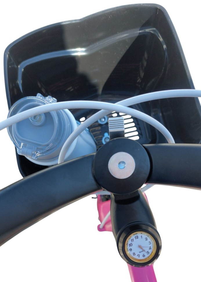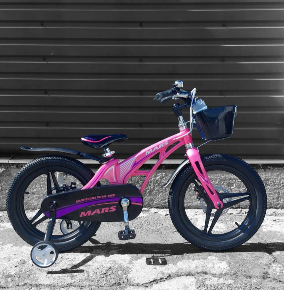 Боковые колёсики, крылья, корзинка, звонок, бутылочка с держателем, насос, подножка