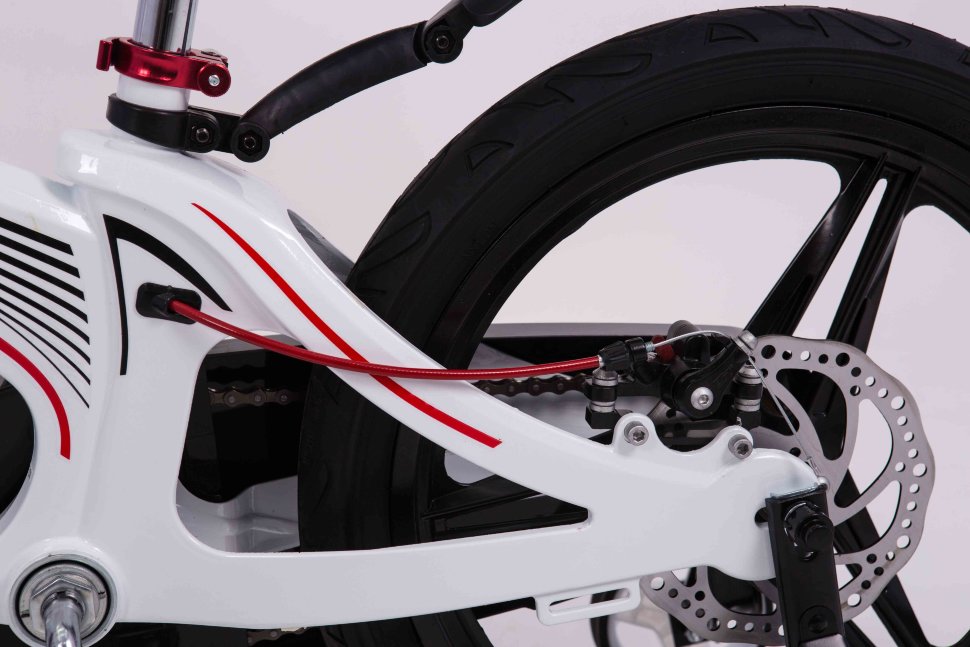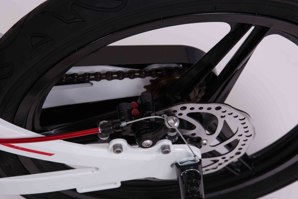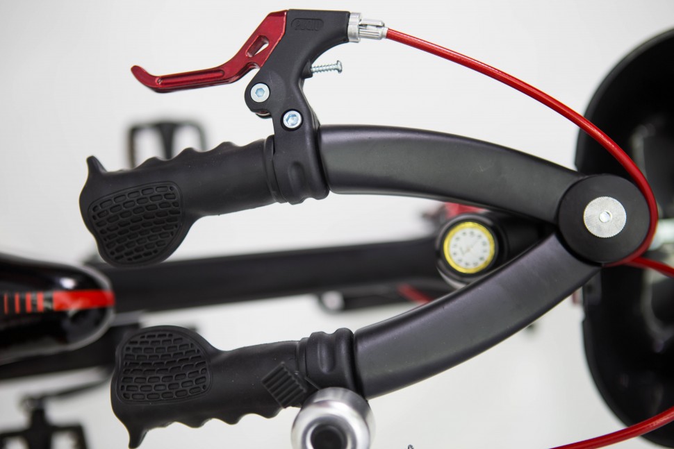 Оба тормоза ручные, дисковые как на взрослых велосипедах, благодаря чему тормозит очень плавно, в то же время эффективно и быстро.