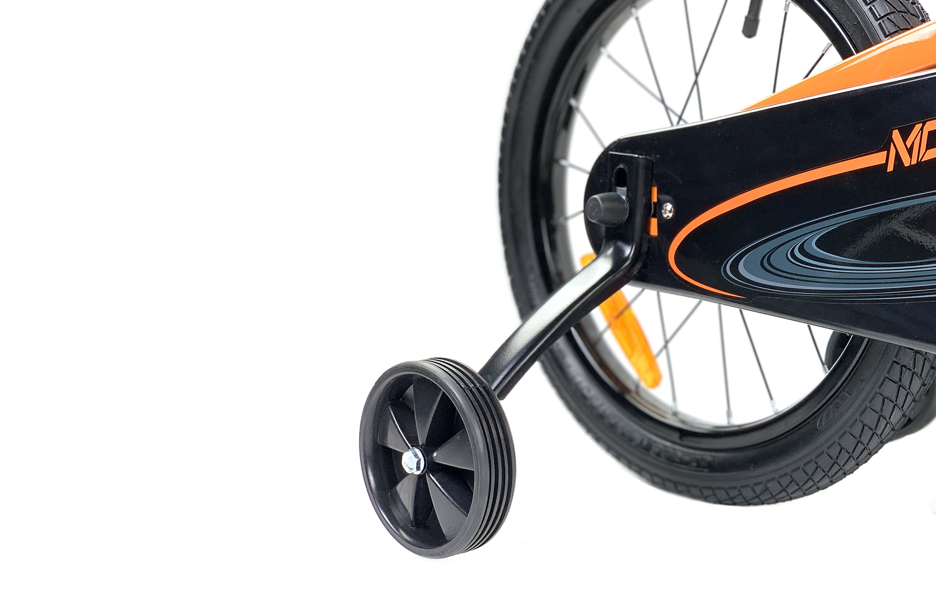 На байк установлена ригидная вилка. Она легкая и прочная, обеспечивает повышенную жесткость передней части велосипеда, а следовательно и высокий контроль в управлении. Основным преимуществом подобной вилки выступает ускоренное повышение уровня езды неумелым маленьким велосипедистом. Амортизационная вилка покроет большинство ошибок при езде, но жесткая – нет. Использование жесткой вилки обезопасит Вашего ребенка в будущем от ошибок, а пока Ваш ребенок обучается, за его безопасность будут отвечать боковые колеса, которые идут в комплекте.