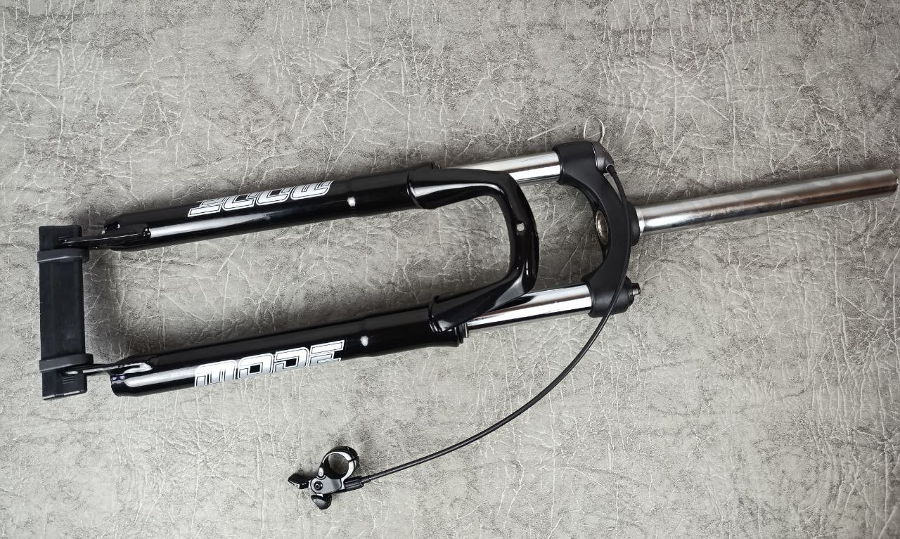 - Вилка оснащена механической блокировкой с выносной манеткой на руль и регулировкой жесткости.