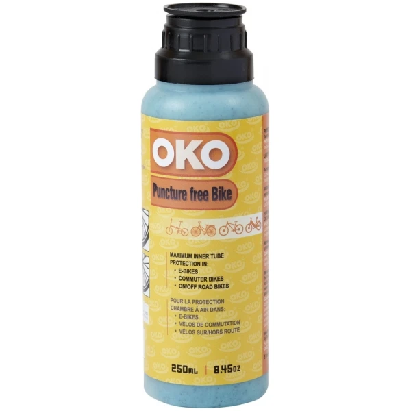 Універсальний продукт для поїздок на гірських велосипедах (ідеально підходить для туризму і електро-велосипедів). Багато інших велосипедні герметики занадто слабкі, щоб швидко усунути прокол. OKO Puncture Free однаково швидко запечатує отвори в шинах і камерах і захищає їх місяцями і місяцями, не висихаючи.