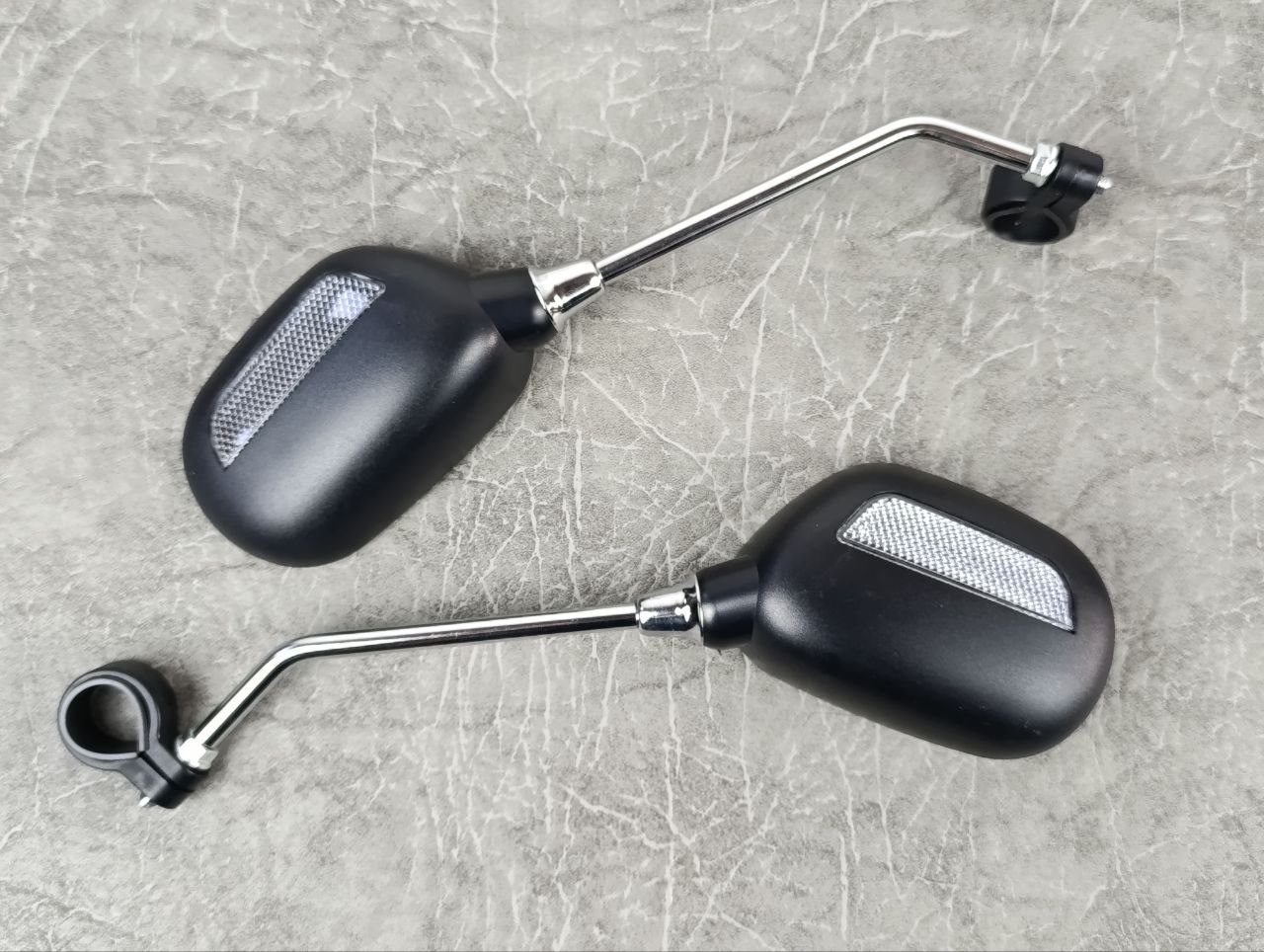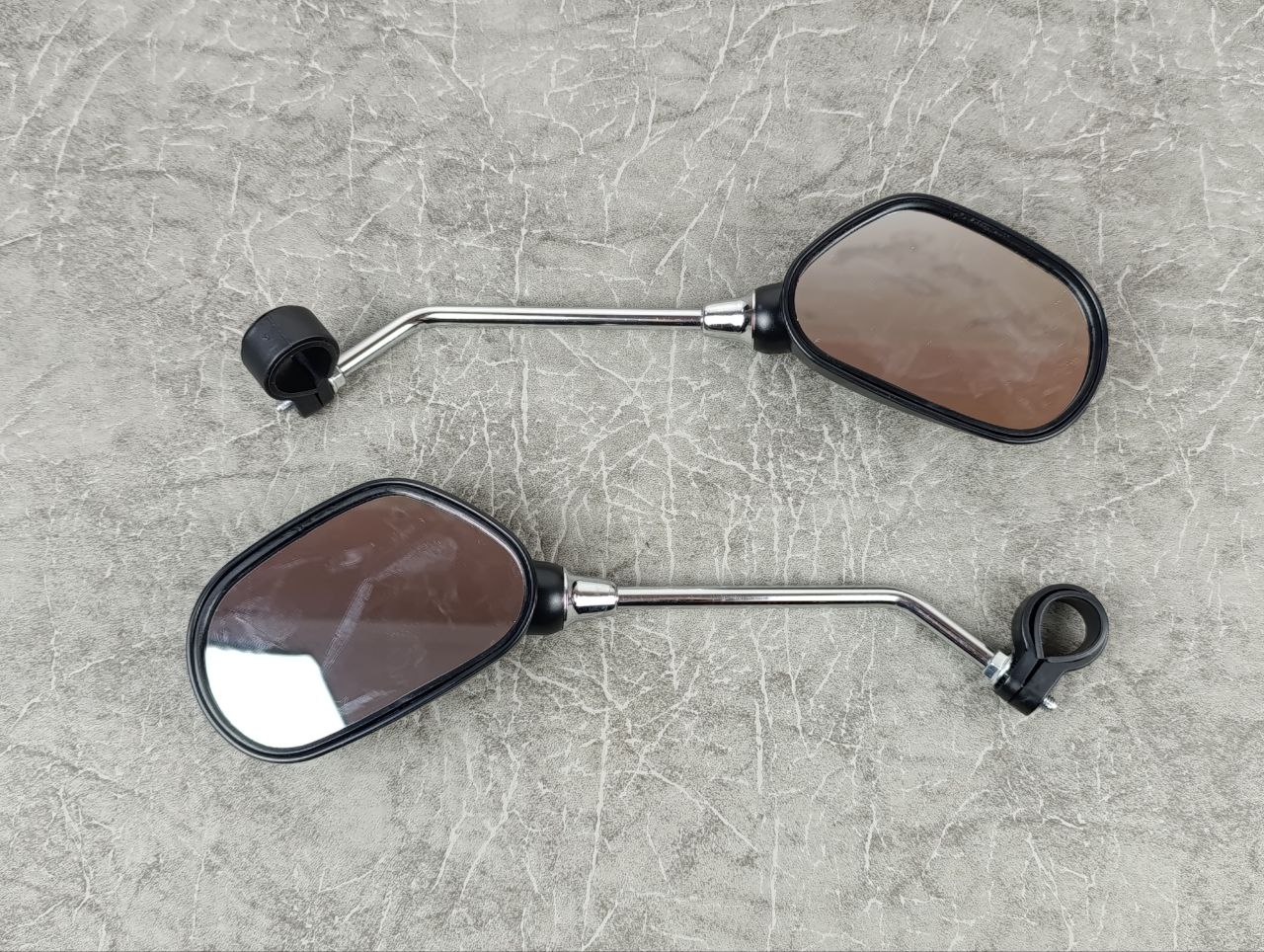 Комплект із двох повнорозмірних велосипедних дзеркал на металевих ніжках. Підходять для встановлення на велосипеди, а також мопеди, скутери та електротранспорт.