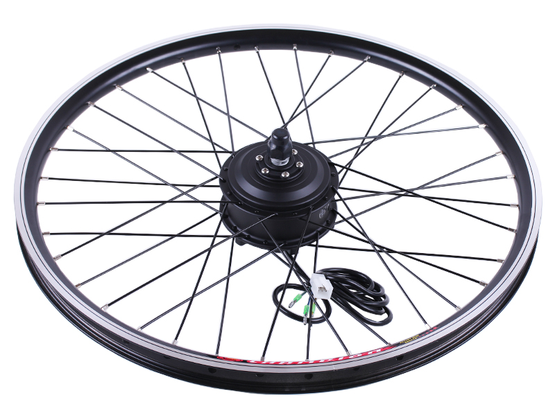 Елементи готові до монтажу. Встановлюються легко і без проблем з посадковими місцями та тріскачками. Зібране та закріплене колесо з електродвигуном 36v 350w, ставиться на передню або задню вісь велосипеда (залежно від комплекту). Міцний обід з посиленими спицями захищає двигун від деформації, витривалий і стійкий до навантажень.