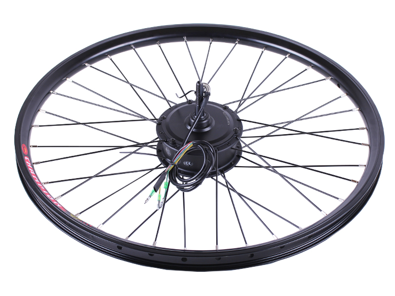 Елементи готові до монтажу. Встановлюються легко і без проблем з посадковими місцями та тріскачками. Зібране та закріплене колесо з електродвигуном 36v 350w, ставиться на передню або задню вісь велосипеда (залежно від комплекту). Міцний обід з посиленими спицями захищає двигун від деформації, витривалий і стійкий до навантажень.
