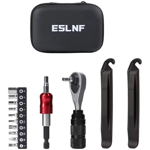 – кишеньковий набір з храповим ключем – насадки: хрестовина PH1, плоска SL4 шестигранник H2,5/3/4/5/6/8 мм, Torx T25, T30 – ключ із замикаючою голівкою, – матеріал: ключ CR-V сталь, бита сталь: S2 – чохол кишені – комплектується: ключ-тріскачка з подовжувачем, подовжувач насадки набір біт (10 шт.), лопатки 2шт – упаковка: 228г