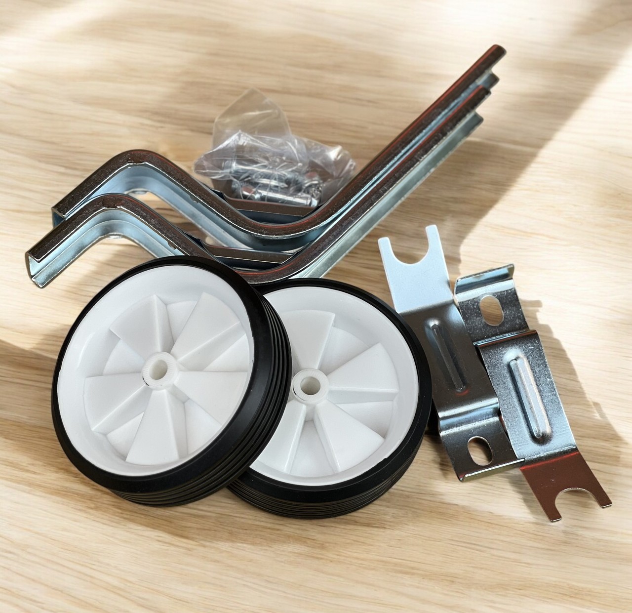 - Комплектація: 2 колеса, 2 кронштейни, 2 монтажні пластини та кріпильні болти