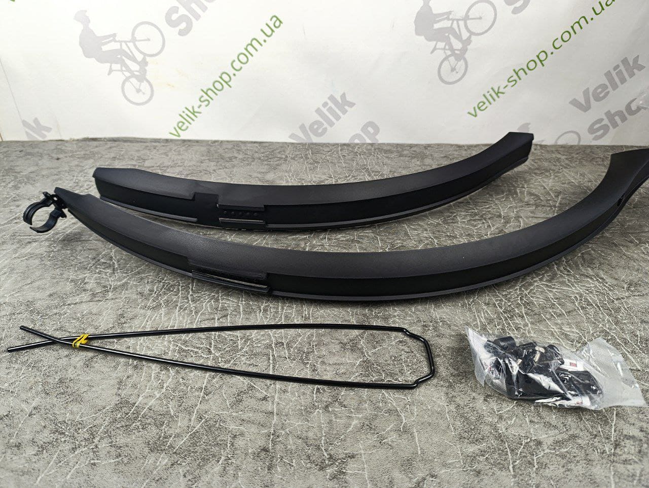 Довжина забезпечує повне закриття коліс, захищаючи велосипедиста від бризок та бруду. Заднє крило має три точки кріплення і додаткові підпірки, щоб жорстко фіксувати. Крила можуть бути ідеально адаптовані до радіусу колеса, забезпечуючи максимальний захист. Крила виготовлені із пластику. В ідеалі підходять для покришок шириною до 2.1″. Переднє крило кріпиться в отвір горили вилки, при покупці треба враховувати необхідний зазор між горилою і покришкою, щоб крило не притирало. кріпленням по центру за перемичку рами та ззаду підпіркою.Удароміцний пластик витримує удари та зачепи.