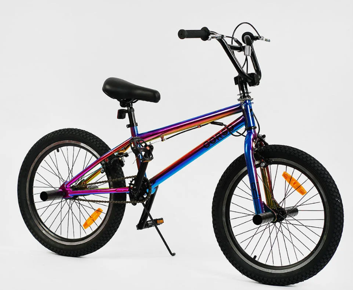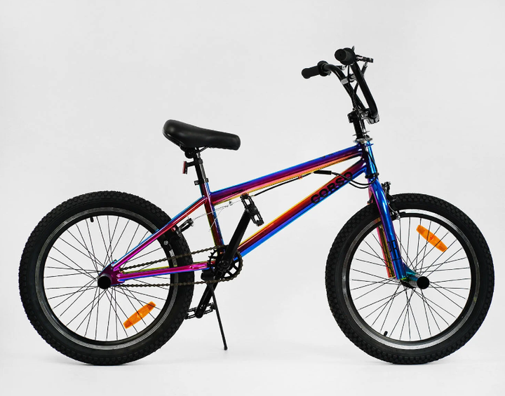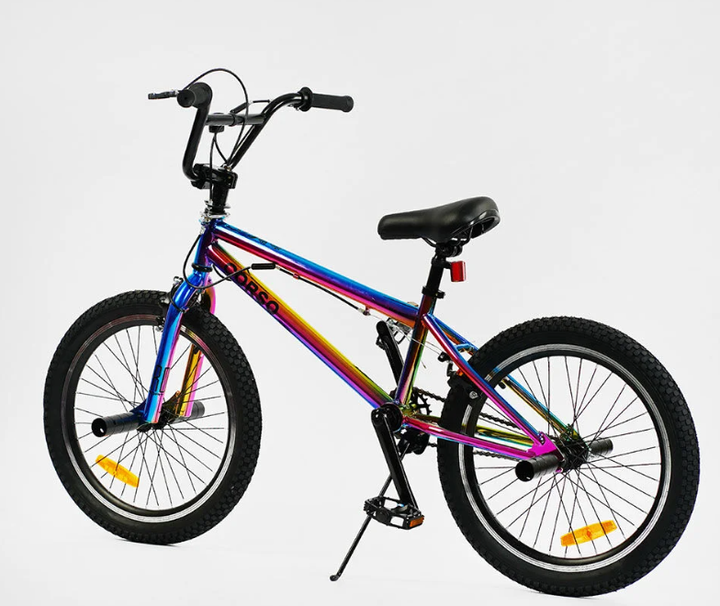 Велосипед 20 Corso BMX-1055 – це одношвидкісний BMX-велосипед, розроблений для трюків та активного катання. Цей велосипед добре підходить як для початківців, так і для досвідчених велосипедистів, завдяки своїй міцній конструкції та характеристикам, що сприяють зручності та керованості.