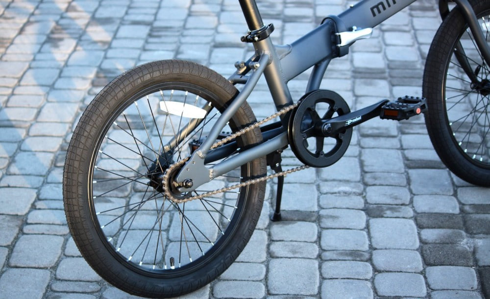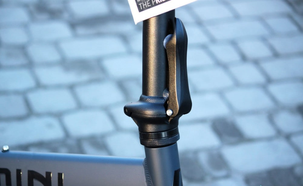 Рама виконана з алюмінію, а вилка з легованої сталі. Така компоновка дозволила зробити велосипед легким і комфортним одночасно, адже сталь відмінно поглинає вібрацію від дорожнього полотна. Додатковий комфорт дає м’яке й широке сідло, а також пряма посадка. Міцні механізми складання з надійними замками розташовані на рамі, складаючи велосипед навпіл, і на рульовій колонці, складаючи кермо. Що б ще більше зменшити габарити, можна опустити сідло. Механізми не потребують використання інструменту.