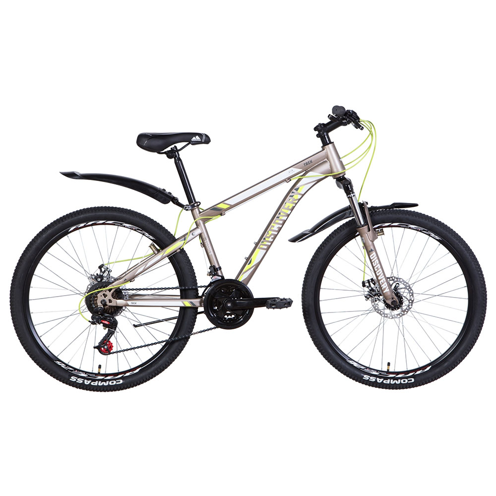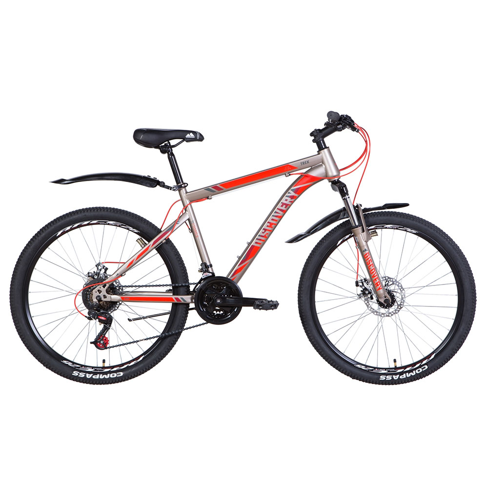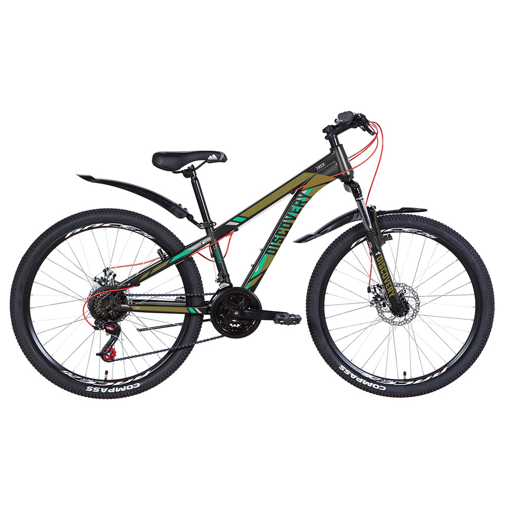 26 Discovery TREK DD – гірський хардтейл українського виробництва, зібраний на дискових гальмах і сталевій рамі. Discovery TREK оснащений амортизаційною вилкою, що гасить вібрації на дорозі будь-якої поверхні і не потребує особливого догляду. Ви можете сміливо вирушати кататися як у гірську місцевість, так і лісову паркову зону. Широкий діапазон кольорів та розмірів рами дає можливість підібрати модель будь-кому. Щоб велосипед було зручно припаркувати, він має підніжку. Модель підходить райдером із зростанням від 1,35 м.