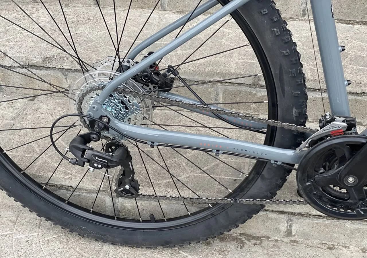 Трансмісія початкового рівня Shimano Tourney 3×7, з широким діапазоном передач, дозволяє швидко їхати по рівних ділянках і легко підніматися на пагорби.