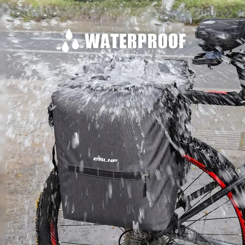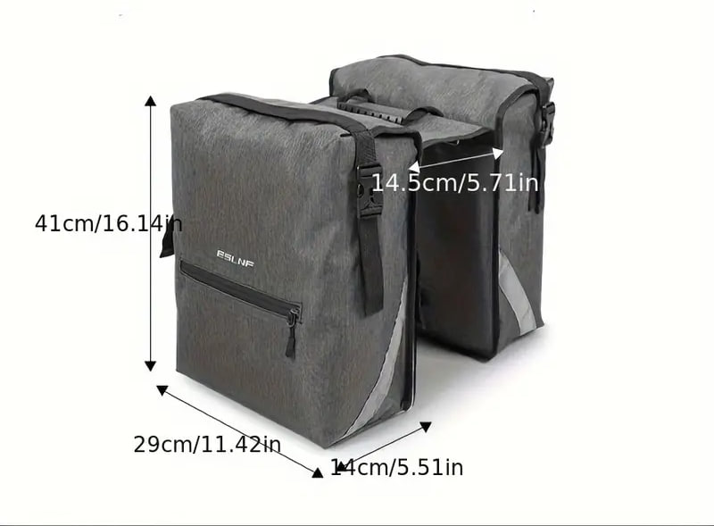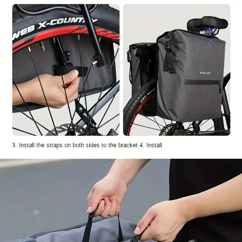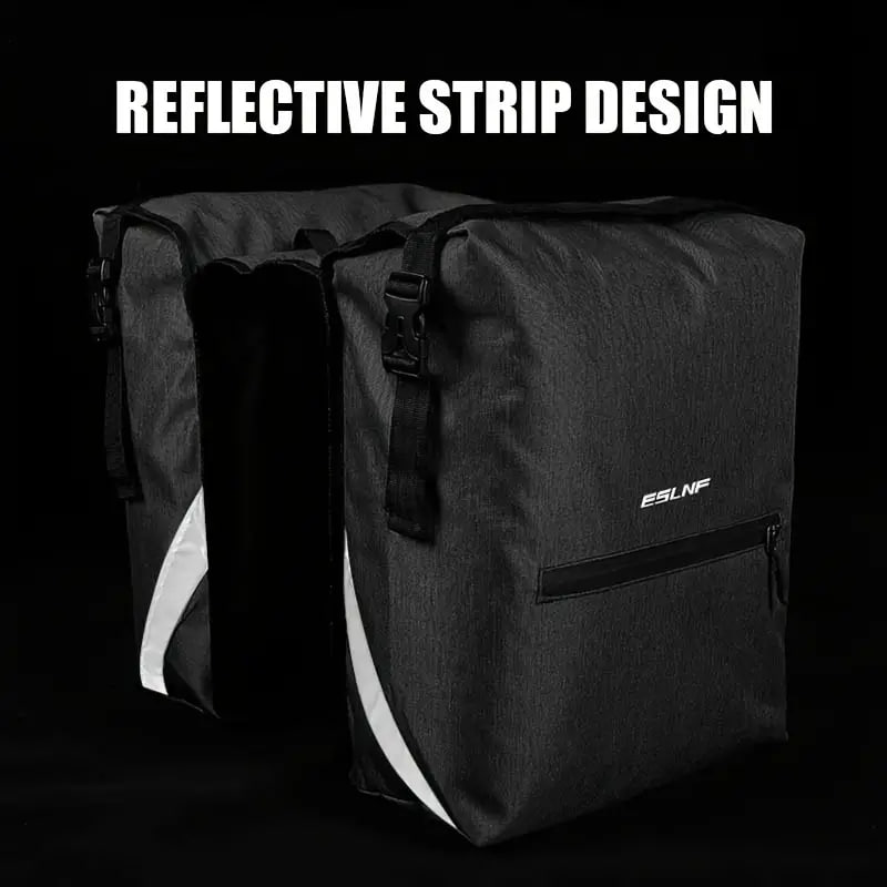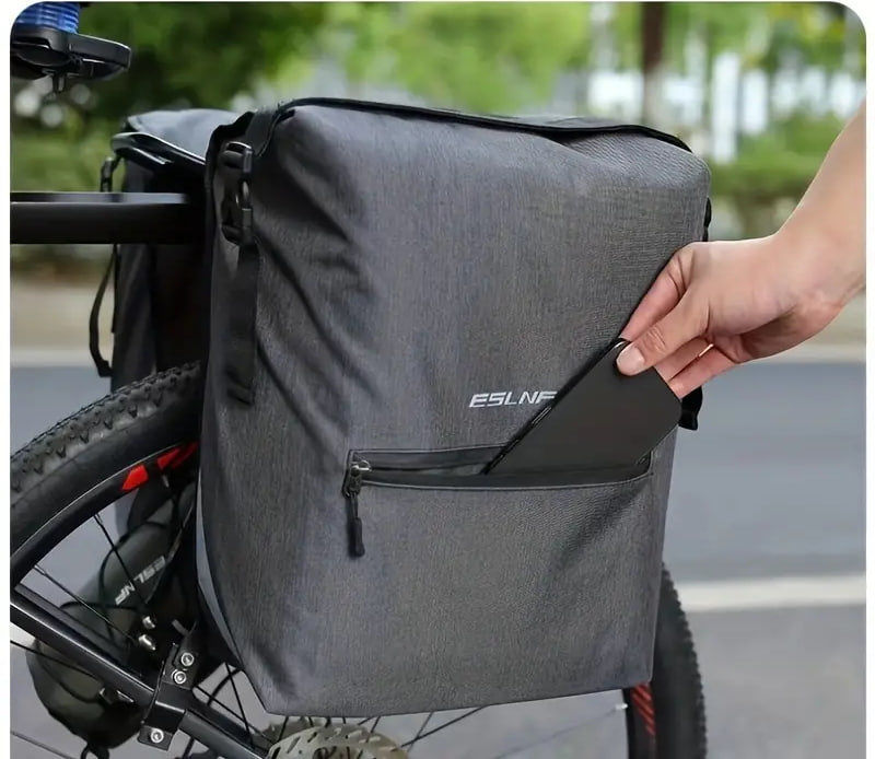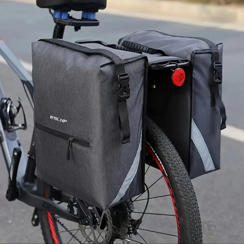 Сумка велосипедна 2-секції, фірма EsLNF, фіксується на багажник.Два відсіки сумки загальним об’ємом 28 л.Є ручка для носіння в руці. /p>