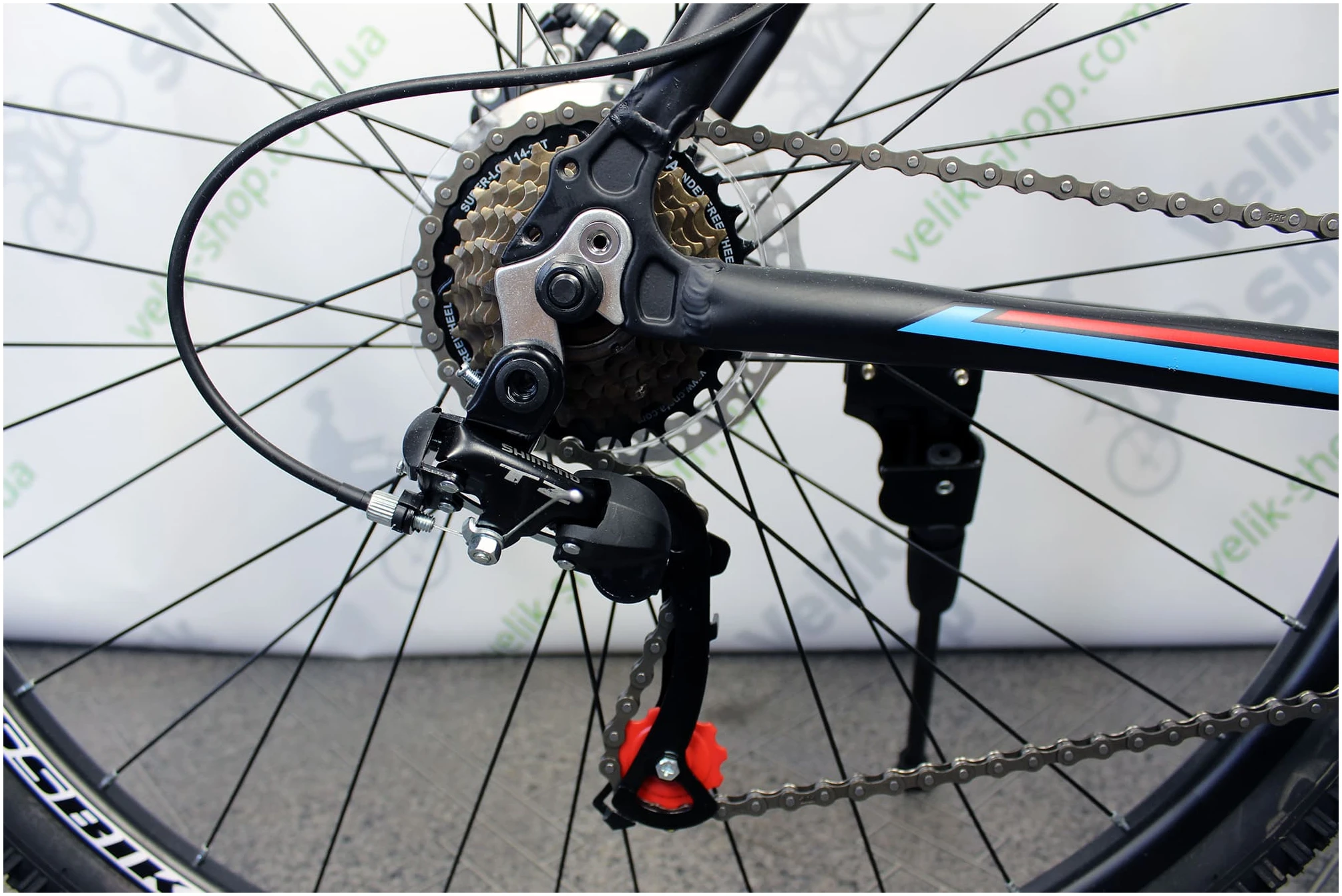| Перемикач швидкостей (Задній) | SHIMANO RD-TZ50 пряма установка, довга лапка |