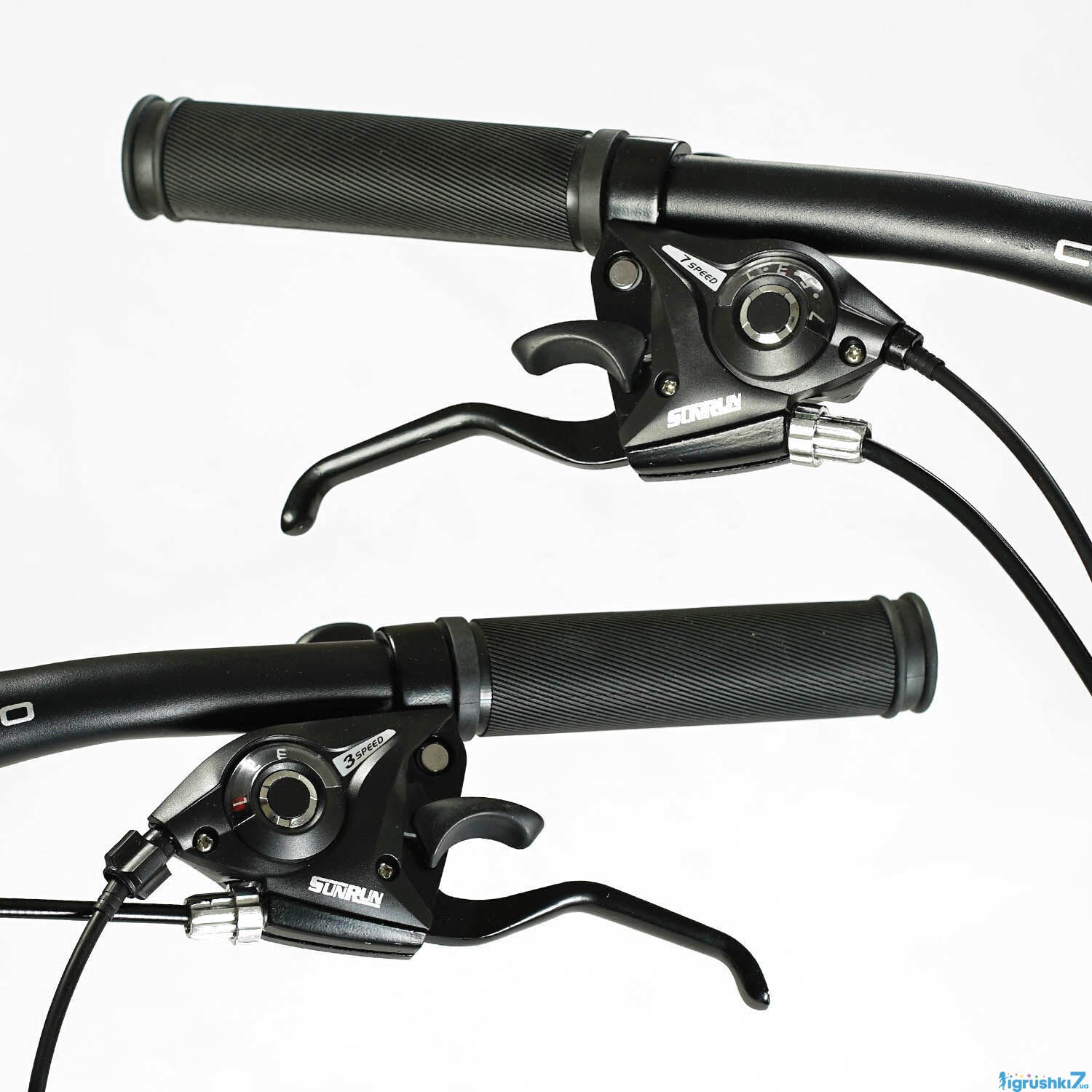 Кількість швидкостей – 21 (3х7) швидкість, Система – Сталева, Тріскачка – Sunrun, 14-28T, Передній перемикач – Sunrun, Задній перемикач – Sunrun, Манетки (ручки перемикання) – Sunrun (моноблоки) |