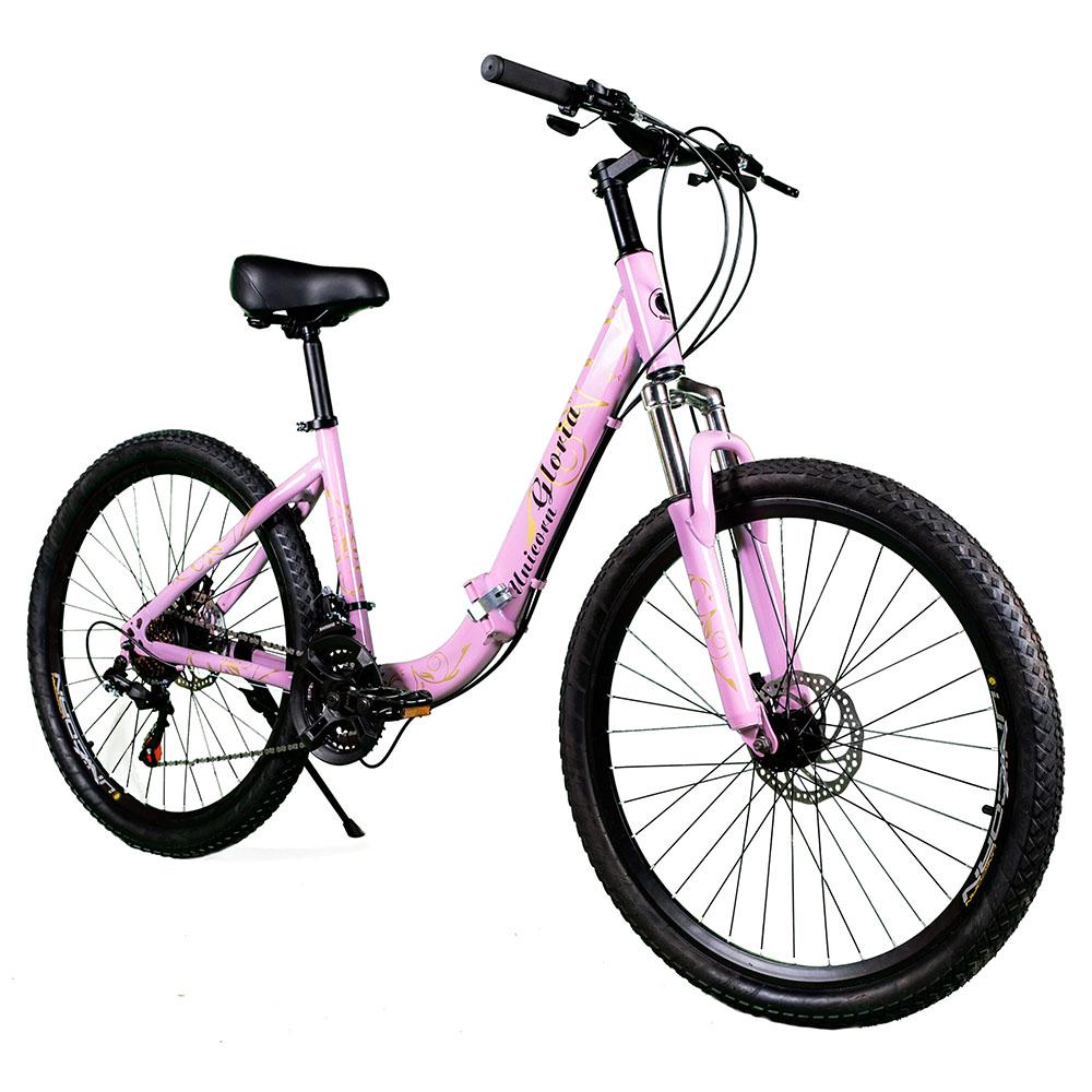 Unicorn Gloria 26 – жіночий гірський велосипед із заниженою геометрією рами для зручної велоїзди. На велосипеді все зроблено так, щоб насолоджуватися катанням із задоволенням. Велосипед оснащений дисковою гальмівною системою і навісним від Shimano. Колеса 26 роблять велосипед динамічнішим і маневренішим на дорозі. Підійде для зростання від 150 до 165 см.