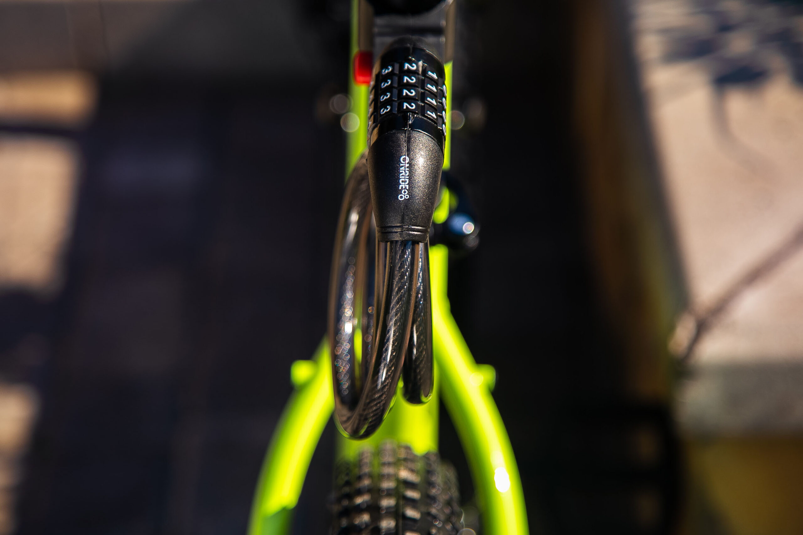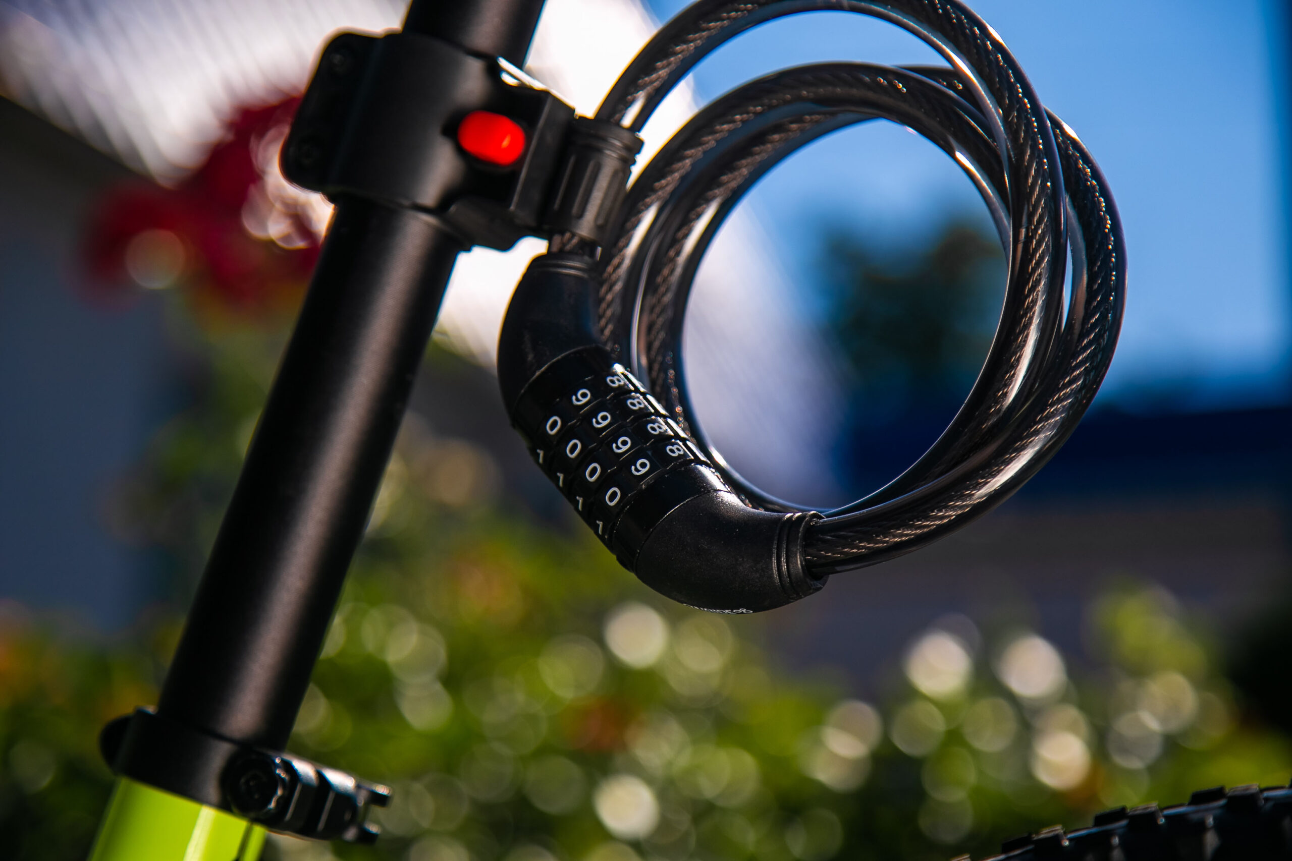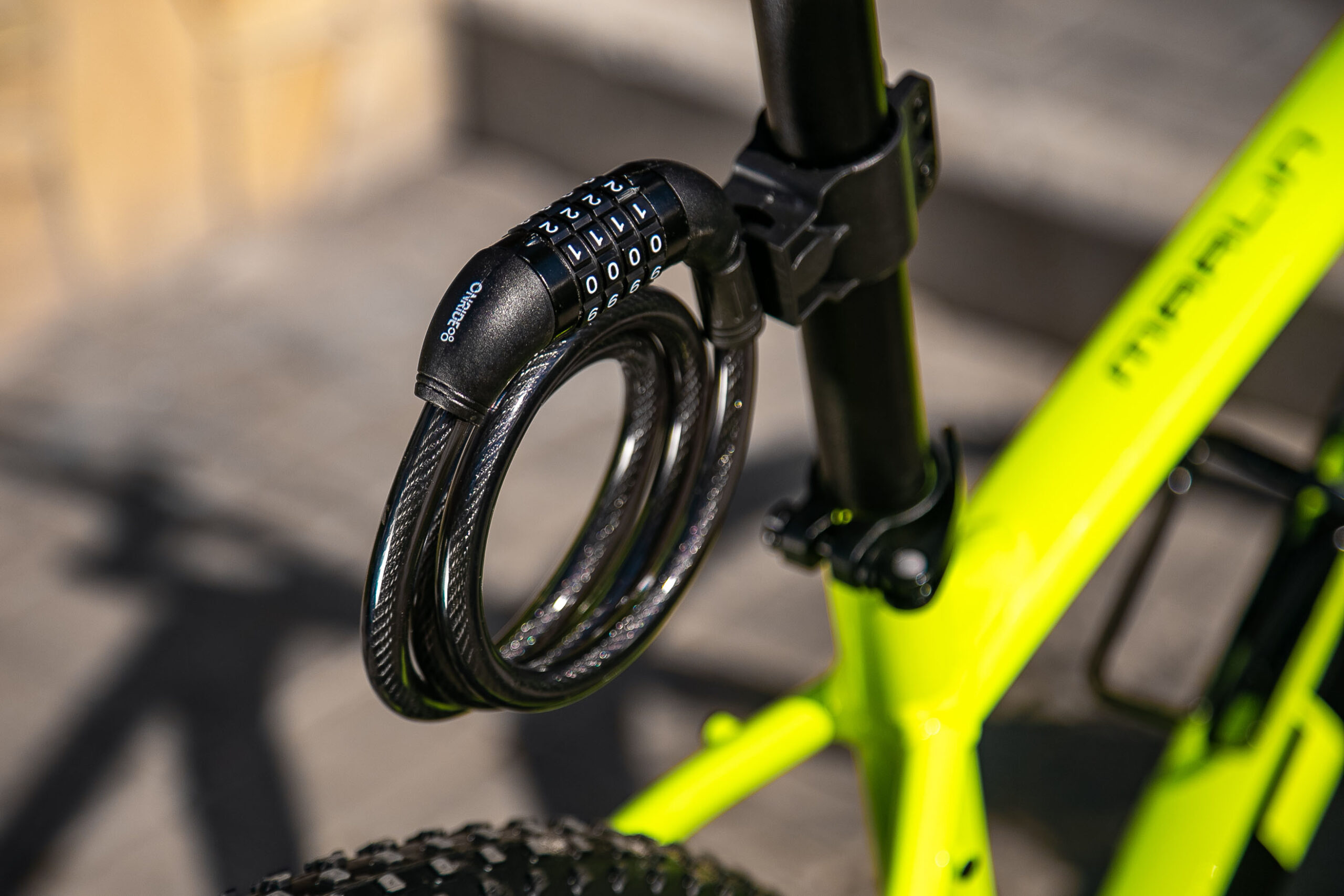 Спіральний велозамок з кодовим ключем. В комплекті є кріплення, за допомогою якого можна закріпити замок на підсідельний штир. Можливість зміни коду замка. Діаметр сталевої серцевини – 5,6 мм, зовнішній діаметр із захисною оболонкою – 12 мм.